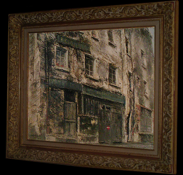パリ在住の作家、平川勇の1968年の格調高い作品である。まるでそこに壁があるかのような描写力。確かなマチエールには脱帽。見る者の心を揺さぶる仕上がりになっている。